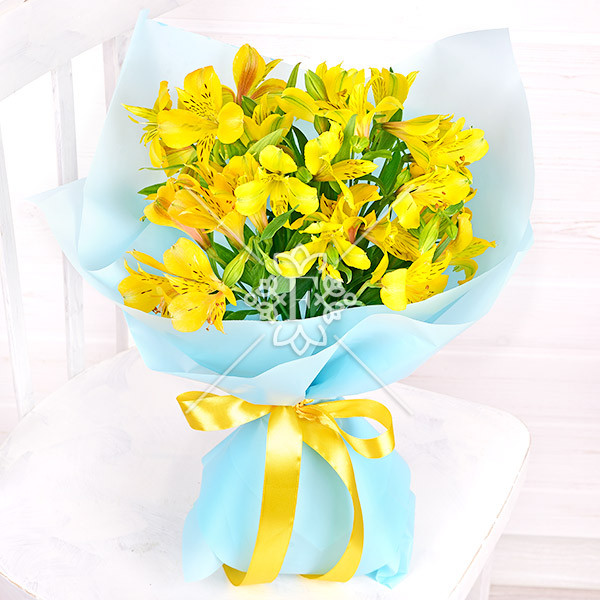 Цветочная композиция «Для самой солнечной» из ярко-желтой альстромерии искрится радостью и отличным настроением. Букет станет прекрасным цветочным комплиментом!